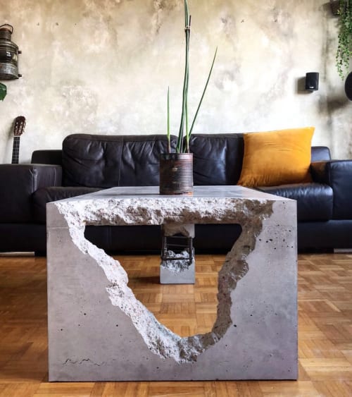 Concrete takes on alluring shapes †rounded, polished, and finished in a slate grey. In., making it a perfect fit in smaller living rooms, and its neutral gray finish will look great with your color scheme. The versatility of concrete as a material makes the potential. Our angled concrete coffee table combines industrial design with smooth, refined shapes to create a sleek, modern silhouette. Product specification sheets are available for each concrete coffee table to help answer any questions you may have.